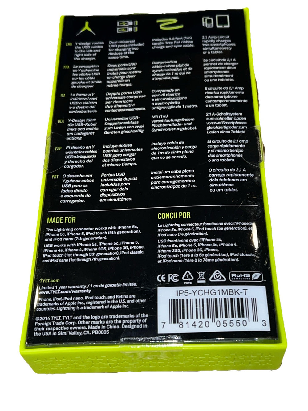 The Tylt Y-Charge is designed for convenience and speed, with a powerful output that gets your devices charged quickly and efficiently. It comes with a Lightning cable to connect your devices, and its compact size ensures it fits easily in your car's dashboard or pocket. Manufactured in the United States, this car charger blends durability with functionality, ensuring your devices stay charged wherever your travels take you.